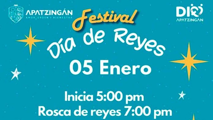 El ayuntamiento de Apatzingán invita cordialmente a toda la población a formar parte del Festival de Reyes el próximo domingo 5 de enero evento que será realizado en el parque Amanecer, a partir de las 5:00 pm para después dar paso para partir la tradicional Rosca de Reyes en punto de las 7:00 y posterior disfrutar de los villancicos programados para las 8:30.