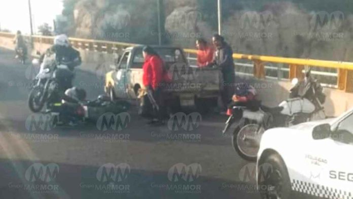 Morelia, Mich.- Jueves 02 de enero de 2025.- Una joven motociclista resultó lesionada tras chocar contra una camioneta que estaba descompuesta sobre el puente Guadalupe Victoria-Torreón Nuevo, al norte de Morelia, comentaron autoridades policiales.
