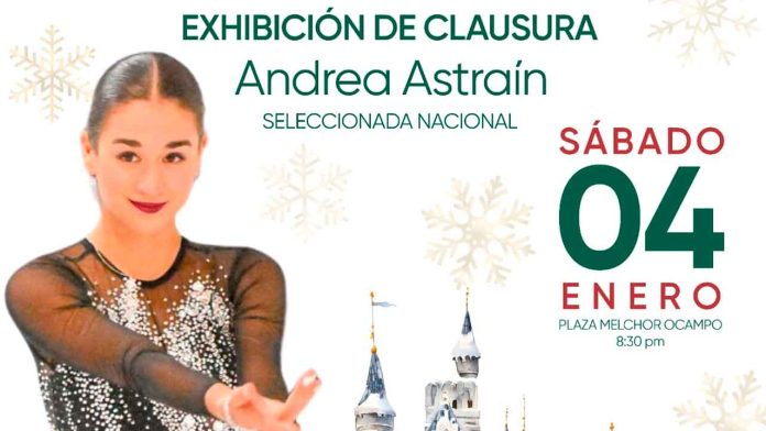 Será en punto de las 8:30 de la noche cuando la talentosa Andrea Astraín, seleccionada nacional para los Juegos Olímpicos de Invierno 2026, deleite a las y los morelianos con una muestra de patinaje en las instalaciones de la pista de hielo que el Gobierno de Morelia instaló durante esta temporada vacacional.