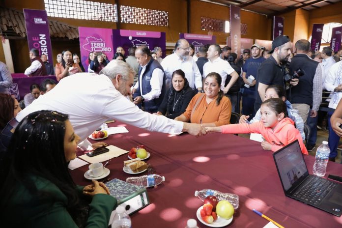 En el pueblo natal del general Francisco J. Múgica, el mandatario recibió y atendió solicitudes ciudadanas para el fortalecimiento de la infraestructura educativa, intervención de caminos, pavimentaciones, manejo sustentable del agua y reforestación.
