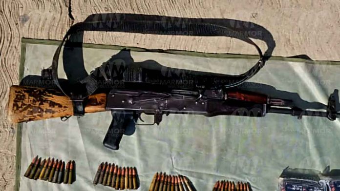 De inmediato las fuerzas del orden establecieron un perímetro sin que se lograra ubicar a persona alguna, por lo que se procedió al aseguramiento del equipo bélico.