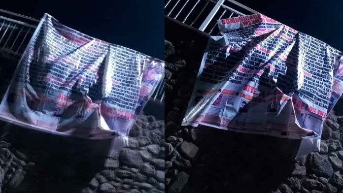 De acuerdo con la información recabada en la labor reporteril, la lona, firmada por “El Pueblo Cansado de Las Injusticias” fue colocada en una barda de la zona de “Las Graditas”, en la colonia Satélite, hasta donde acudieron uniformados qué la aseguraron para ponerla a disposición de la Fiscalía General de la República (FGR).
