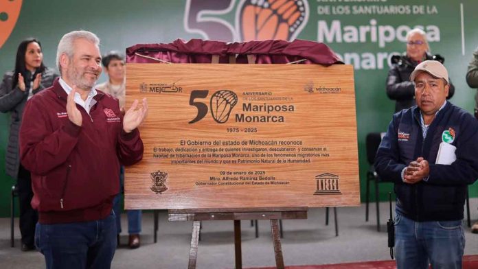 Al celebrar los 50 años del descubrimiento de los Santuarios de la Mariposa Monarca, el mandatario explicó que esta herramienta de vanguardia fue implementada por el Gobierno de Michoacán desde el año pasado, la cual utiliza videovigilancia permanente, así como inteligencia artificial para monitorear los cambios de uso de suelo en nuestra entidad.