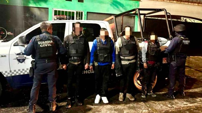 Los elementos de la Guardia Civil realizaban patrullajes preventivos sobre la avenida Álvaro Obregón en la cabecera municipal, donde ubicaron a bordo de una camioneta marca Nissan -sin número de identificación visible- a civiles armados.