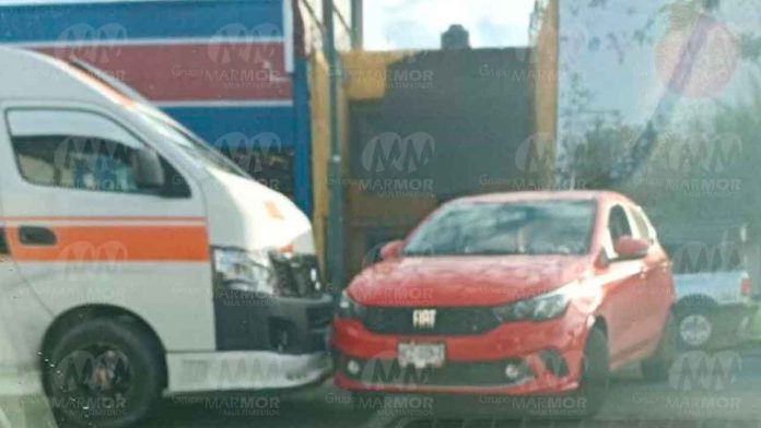 Morelia, Mich.- Lunes 13 de enero de 2025.- Un automóvil y una combi de la Ruta Naranja protagonizaron un choque en la colonia Granjas del Maestro, ubicada al norte de Morelia, informaron fuentes allegadas al tema.