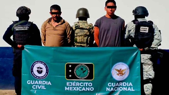 Buenavista, Mich.- 13 de enero de 2025.- Dentro del operativo interinstitucional Fuerza de Tarea Michoacán, desplegado en la Tierra Caliente, las fuerzas del orden detuvieron a dos presuntos gatilleros del Cartel Jalisco Nueva Generación (CJNG), en el municipio de Buenavista.