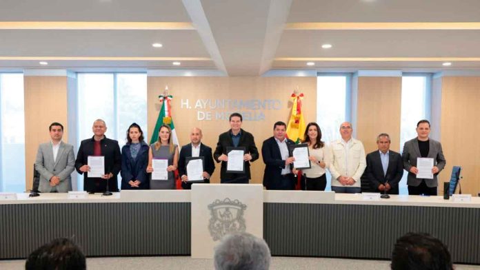 Morelia, Michoacán; 15 de enero de 2025. – Con un reconocimiento a la administración del Presidente Alfonso Martínez Alcázar, por su compromiso con el desarrollo de Morelia, la Cámara Mexicana de la Industria de la Construcción (CMIC) y el Gobierno Municipal firmaron un convenio de colaboración para seguir dirigiendo recursos a acciones para la ciudadanía moreliana.