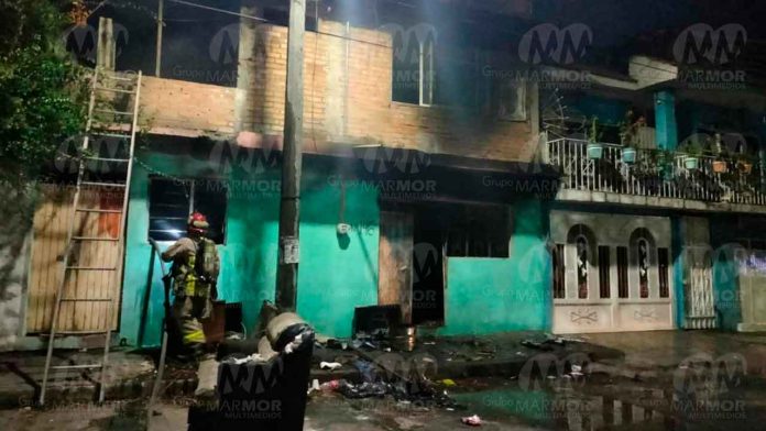 Morelia, Mich.- Viernes 17 de enero de 2025.- Un domicilio ardió en llamas durante los primeros minutos de este viernes en la colonia Unión Popular Solidaria, ubicada al poniente de Morelia, hecho que sólo dejó daños materiales, comentaron fuentes de rescate.