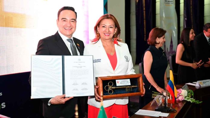 En acto seguido, el presidente, Carlos Soto entregó las llaves de la ciudad a la alcaldesa de Cajicá, Colombia, Fabiola Jácome Rincón, así como reconocimientos a los concejales del mismo municipio, a quienes se les atribuyó el título de huéspedes distinguidos.