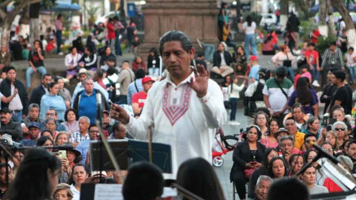 Uruapan, Mich.- 26 de enero de 2025.- Con gran calidad musical, la Orquesta Sinfónica Comunitaria Don Vasco, conformada por 60 niños y jovencitos, ofrecieron un excelso concierto en el centro de esta ciudad, ante una regular asistencia de público.