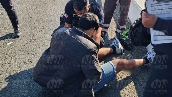 Morelia, Mich.- Domingo 26 de enero de 2025.- Un motociclista resultó lastimado al accidentarse sobre un puente de la avenida Francisco I. Madero, al poniente de Morelia, informaron fuentes allegadas al tema, las cuales agregaron que aparentemente se trató de un derrape.