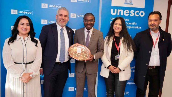 París, Francia, 27 de enero de 2025.- El gobernador Alfredo Ramírez Bedolla entregó a la Organización de las Naciones Unidas para la Educación, la Ciencia y la Cultura (Unesco) el expediente para que Pátzcuaro obtenga el reconocimiento de Patrimonio Mundial en la categoría de Sitio de Memoria Histórica.
