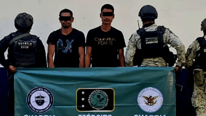 Apatzingán, Mich.- 27 de enero de 2025.- Este lunes se registraron enfrentamientos armados entre células criminales en comunidades de Apatzingán, lo que movilizó a personal de Guardia Civil, Defensa y Guardia Nacional, cuyos elementos fueron agredidos por criminales, por lo que tras repeler el ataque lograron capturar a dos presuntos integrantes del Cartel Jalisco Nueva Generación.