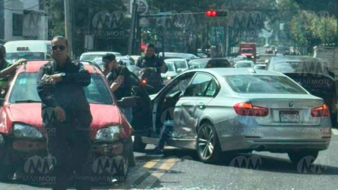 Morelia, Mich.- Miércoles 29 de enero de 2025.- Dos vehículos protagonizaron un choque sobre la Calzada Ventura Puente, al sur de Morelia, hecho que dejó daños materiales y ocasionó caos vial, trascendió en la labor noticiosa.