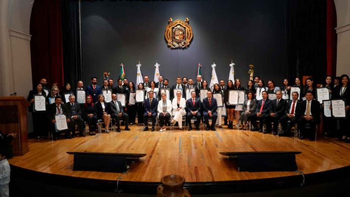 Morelia, Michoacán, a 01 de febrero de 2025.- 41 estudiantes de Posgrado de la Universidad Michoacana de San Nicolás de Hidalgo (UMSNH) fueron distinguidos por su excelencia académica con la Medalla “Dr. Ignacio Chávez Sánchez”, galardón que fue entregado por la rectora Yarabí Ávila González.