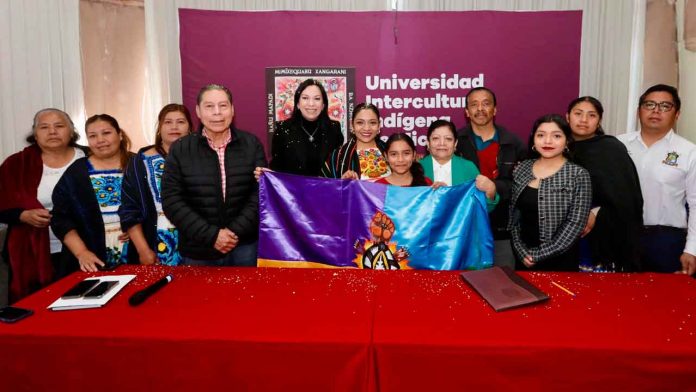 Pátzcuaro, Michoacán, 4 de febrero de 2025.- La directora general del Instituto de Educación Media Superior y Superior del Estado de Michoacán (Iemsysem), Mariana Sosa Olmeda dio posesión a Jennifer Martínez Murillo como nueva rectora de la Universidad Intercultural Indígena de Michoacán (UIIM).