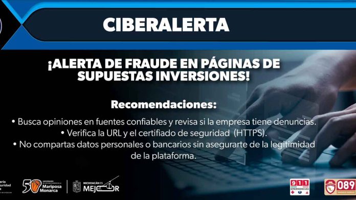 Morelia, Michoacán, 5 de febrero de 2025.- En la actualidad existen múltiples formas de ser víctimas de ciberdelitos que ponen en riesgo el patrimonio propio y familiar, por ello, la Secretaría de Seguridad Pública (SSP) emite la siguiente alerta para prevenir ilícitos financieros.