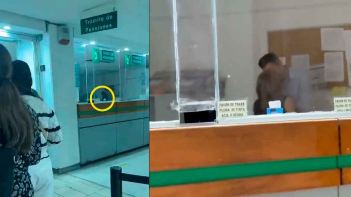 Una denuncia ciudadana se ha hecho viral en redes sociales y es que el video en el que quedo registrada muestra a dos empleados de una clínica del IMSS específicamente en la Unidad Familiar 28 “Del Valle”, ubicada en la colonia del Valle mientras se besan apasionadamente en uno de los módulos de atención, cabe resaltar que su acto lo llevaron a cabo durante un horario laboral y lo que puede confirmarlo es la fila de personas que se encuentra en espera de ser atendida, esta fila se puede observar antes de que el video haga el acercamiento a los apasionados en horario laboral.