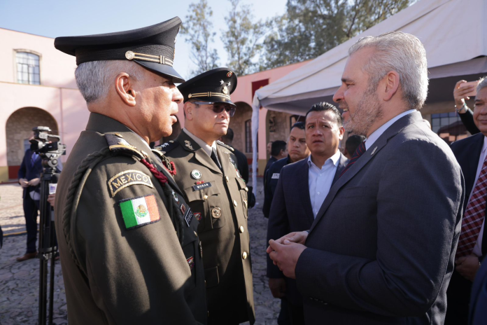 Morelia, Michoacán, 7 de febrero de 2025.- El gobernador Alfredo Ramírez Bedolla asistió a la toma de protesta y posesión del mando del comandante de la 21 Zona Militar, Héctor Francisco Morán González, quien es también general de brigada del Estado Mayor.