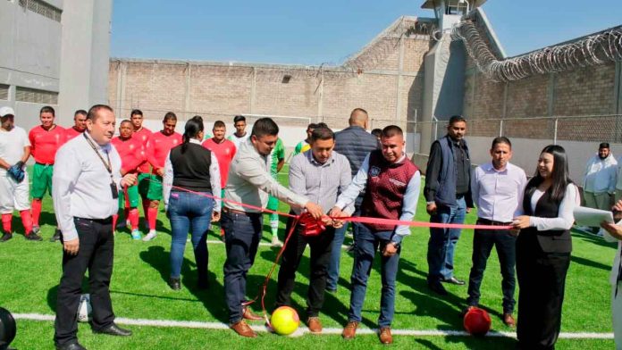 Con el corte del listón y tiros a gol, el coordinador del Sistema Penitenciario, Elías Sánchez García y el presidente municipal de Maravatío, Mario Pérez Flores, dieron luz verde a las actividades deportivas en esta cancha construida con recursos propios y del ayuntamiento, en beneficio de más de 120 internos, personal administrativo y de seguridad y custodia.