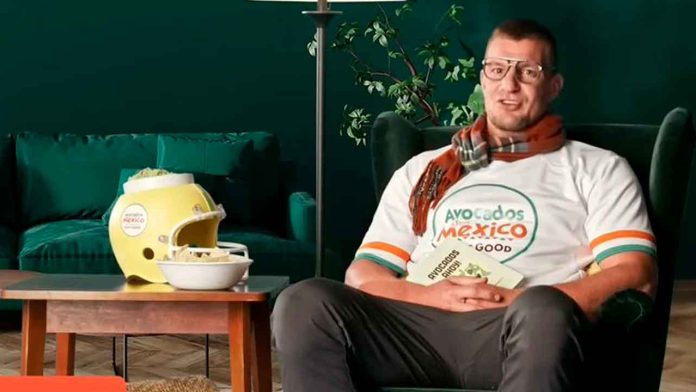Gronkowski, campeón en los Super Bowls XLIX, LI y LIII, con Pats, y en la edición LV, con los Buccaneers, es la imagen de ‘Avocados from Mexico’ (Aguacates de México), asociación sin fines de lucro que desde 2013 crearon importadores y distribuidores de este producto en Estados Unidos.