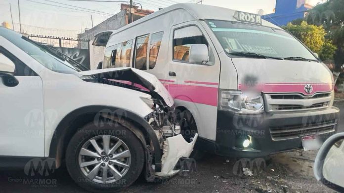 Morelia, Mich.- Domingo 09 de febrero de 2025.- Una camioneta chocó contra una combi de la Ruta Rosa 1 en la colonia Lomas del Tecnológico, ubicada en la zona norte de Morelia. Afortunadamente no hubo personas lesionadas, solo daños materiales, comentaron autoridades policiales.