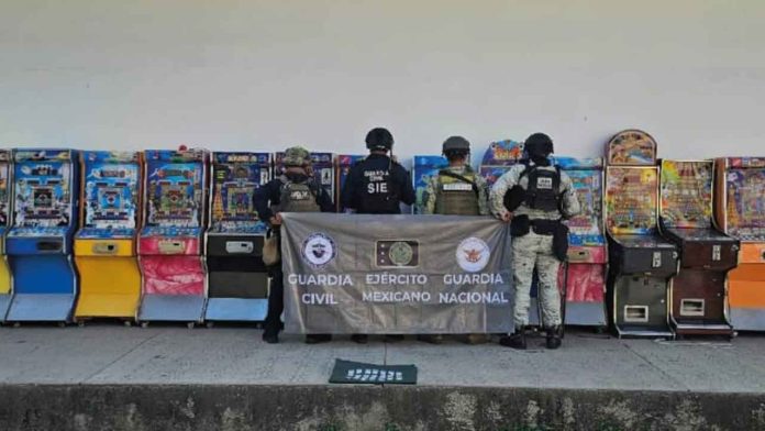 En una segunda acción, los agentes de la Guardia Civil aseguraron 16 máquinas en el municipio de Apatzingán, donde además reforzaron los sistemas de inteligencia para la prevención del delito en puntos estratégicos.
