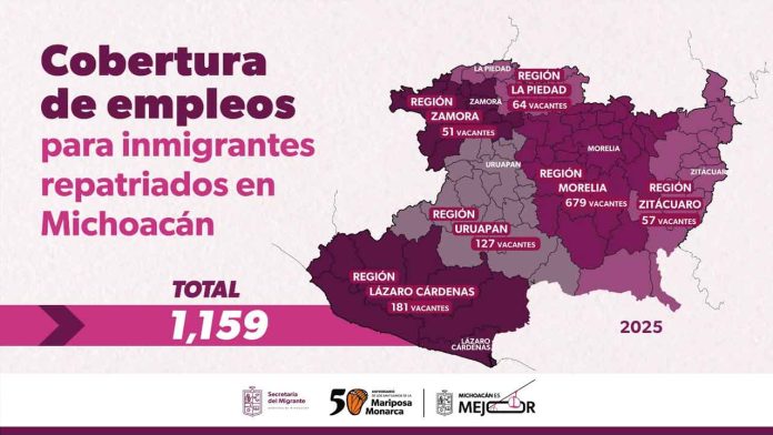 Las actividades del programa se llevarán a cabo en las regiones de La Piedad, Lázaro Cárdenas, Morelia, Uruapan, Zamora y Zitácuaro; donde se han identificado un total de 1,159 vacantes de empleo.