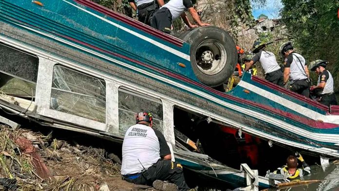 Un autobús con más de 70 personas a bordo cayó desde un puente al fondo de un barranco en la entrada norte de Ciudad de Guatemala, dejando un saldo de al menos 51 personas muertas.