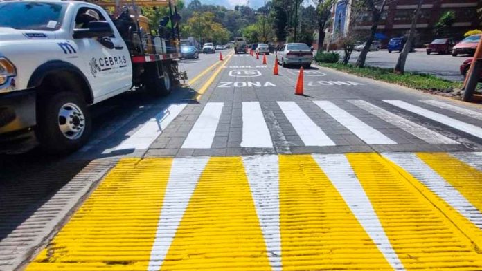 El equipo especializado de CEBRAS de la SEDUM está realizando un balizamiento integral, que incluye la demarcación de cruces escolares, pasos peatonales, flechas de sentido, señales de velocidad, líneas de alto y divisorias de carriles. Estas mejoras contribuirán a aumentar la visibilidad y la seguridad tanto para peatones como para conductores.