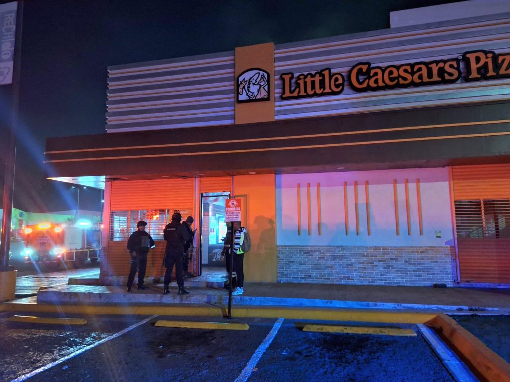 Uruapan, Mich.- 12 de febrero de 2025.- Una intensa movilización por parte de las corporaciones de auxilio y policiales se registró para atender un conato de incendio en la pizzería “Little Caesars”, localizada en la Plaza 500, sobre el Libramiento Oriente de la ciudad de Uruapan, luego un aparente robo.