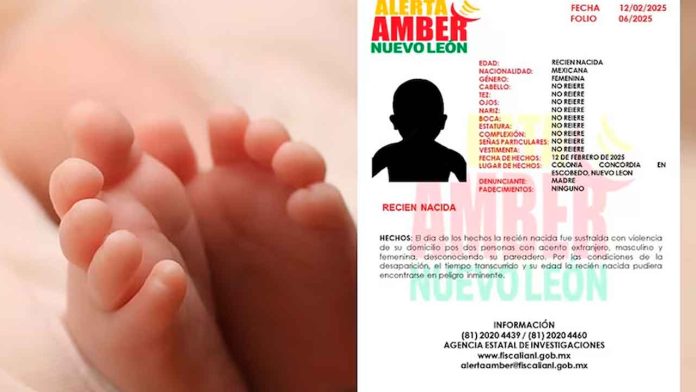 Nuevo León.- Dos desconocidos con acento extranjero, de probable nacionalidad sudamericana, ingresaron a un domicilio en el municipio de Escobedo, en la colonia La Concordia, en Nuevo León, sedaron a una mujer y la despojaron de su bebé recién nacida.