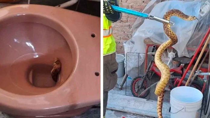Coahuila.- Un hombre se llevó el susto de su vida al encontrar una serpiente dentro del escusado del baño de su casa, ubicada en Torreón, Coahuila.