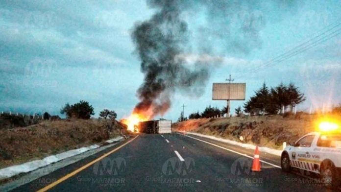 En la imagen que ya circula en redes compartida por dicho organismo, se puede ver a lo lejos lo que parece ser un camión pesado volcado sobre la autopista, mismo que, además, se encuentra en llamas.