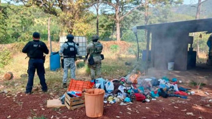 Durante el despliegue de patrullajes en zonas de terracería en la localidad de Puerta Chica, los elementos policiales y castrenses visualizaron los asentamientos, por lo que procedieron a inspeccionar la zona.