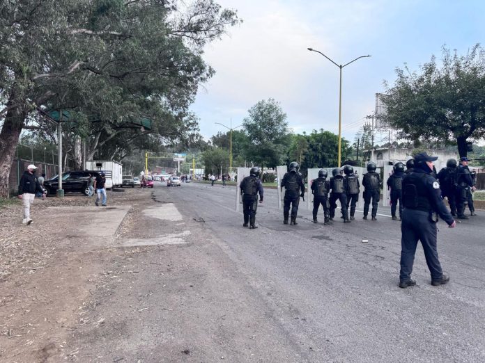 En seguimiento a los acuerdos establecidos hace unos días entre el Gobierno del Estado y el municipio de Uruapan en materia de seguridad, se estableció que no se permitirán más bloqueos a las vías de comunicación. Luego de que varias personas cerraran la circulación en el citado punto y portaran palos, piedras, entre otros objetos, los efectivos de la Guardia Civil y de la Policía Municipal dispersaron a los manifestantes conforme a los protocolos establecidos.