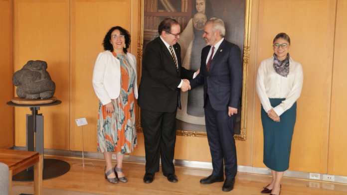 Ciudad de México, 17 de febrero de 2025.- El gobernador Alfredo Ramírez Bedolla y el rector de la UNAM, Leonardo Lomelí Venegas sostuvieron una reunión para reafirmar la colaboración entre la administración pública y la academia para el desarrollo, medio ambiente y social.