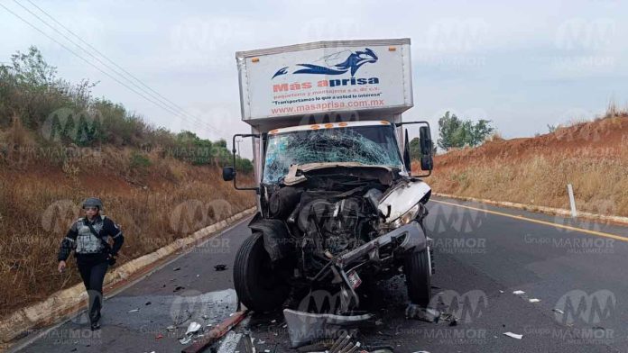 El aparatoso accidente se registró en el kilometro 51+800 del tramo Pátzcuaro – Uruapan, en la autopista Siglo XXI, donde acabó con el frente destrozado un camión de color blanco con razón social “Más aprisa”, empresa de paquetería.