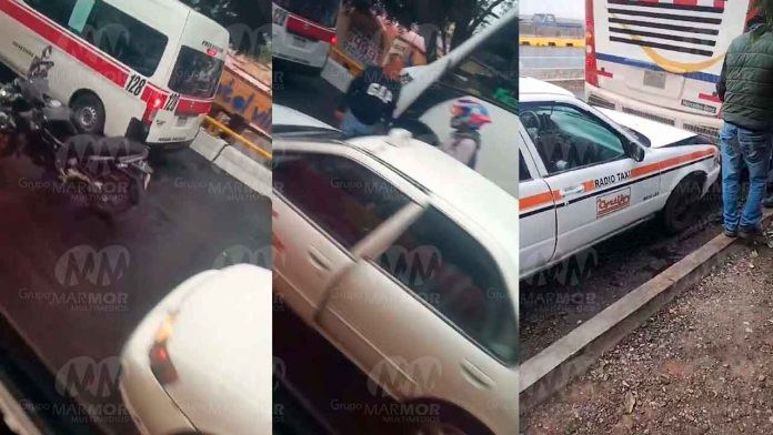 También, sobre el puente elevado de la avenida Francisco I. Madero Poniente, a la altura de la colonia Tres Puentes, en el sentido del Obelisco Lázaro Cárdenas había salida a Quiroga, un taxista y un motociclista protagonizaron una colisión; afortunadamente no hubo heridos.