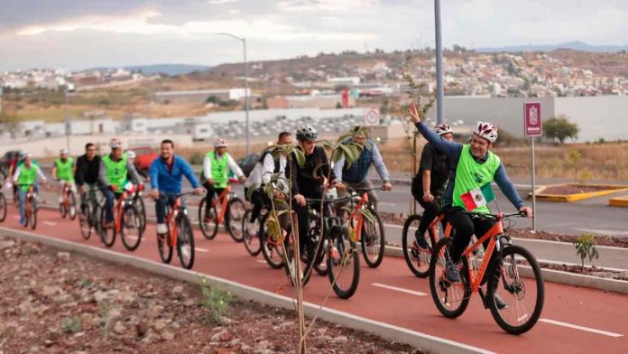 La Piedad, Michoacán, 21 de febrero de 2025.- Con la participación de decenas de personas, el gobernador Alfredo Ramírez Bedolla encabezó la rodada “En bici contra las adicciones”, en el municipio de La Piedad, que cuenta con el parque lineal más grande del estado.