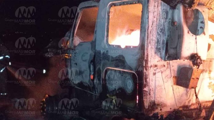 Zinapécuaro, Mich.- 23 de febrero de 2025.- Un vehículo Volkswagen que era remolcado por otra unidad, fue embestido por un tráiler que terminó aplastando al Vocho, muriendo prensado su ocupante, mientras que otro camión de carga también se vio afectado en el accidente y acabó incendiado.