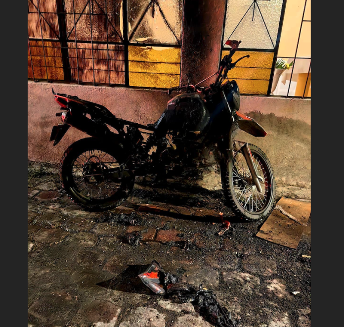 Uruapan, Mich.- 23 de febrero de 2025.- Delincuentes desconocidos arrojaron una bomba molotov en contra de una motocicleta que estaba estacionada por fuera del templo de la colonia Riyitos, al poniente de la ciudad de Uruapan. El hecho que provocó la movilización inmediata de elementos de distintas corporaciones policiacas.