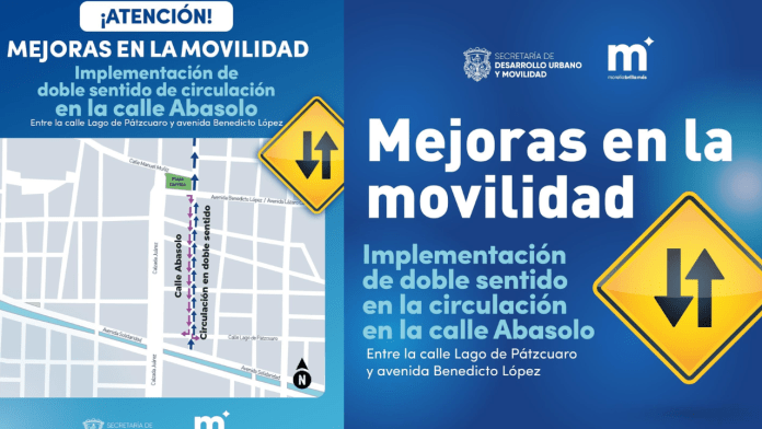 La calle Abasolo tendrá doble sentido entre la calle Lago de Pátzcuaro y la Avenida Benedicto López, mientras que el tramo entre la Avenida Solidaridad y la calle Lago de Pátzcuaro mantendrá su sentido único hacia el norte.