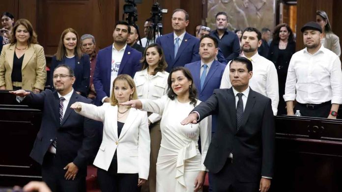 Morelia, Michoacán, a 27 de febrero de 2025.- Las y los legisladores michoacanos tomaron protesta a dos magistradas y dos magistrados que formarán parte del Pleno del Tribunal en Materia Anticorrupción y Administrativa, luego de que éstos cumplieron con la etapa de registro y de entrevistas, y tras ser evaluados, fueron los idóneos para ocupar los cargos.