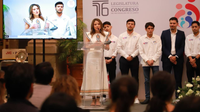 Morelia, Michoacán; 28 de febrero de 2025. – El Congreso del Estado de Michoacán otorgó este viernes un reconocimiento a la Presidenta Honoraria del DIF Morelia, Paola Delgadillo Hernández, por la iniciativa de los Centros Spot, destacándolos como una Buena Práctica con Enfoque de Familia.