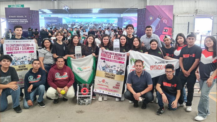 Pachuca, Hidalgo, 2 de marzo de 2025.- Estudiantes del Colegio de Estudios Científicos y Tecnológicos del Estado de Michoacán (Cecytem) ganaron cuatro títulos en las categorías: Programación, Robot Skill, Diseño y Excelencia, dentro del XVI Campeonato Nacional de Robótica y Habilidades STEM, que tuvo lugar en Pachuca Hidalgo.