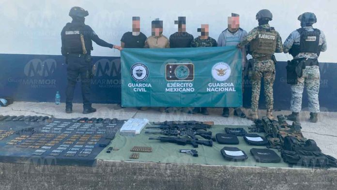 El hecho tuvo lugar en un camino que conduce a la localidad de San Antonio La Labor, derivado del esquema operativo intensificado en la región de la Tierra Caliente, en donde los agentes de la Guardia Civil, Ejército Mexicano y Guardia Nacional (GN), decomisaron armas de fuego, municiones, y 17 cargadores.