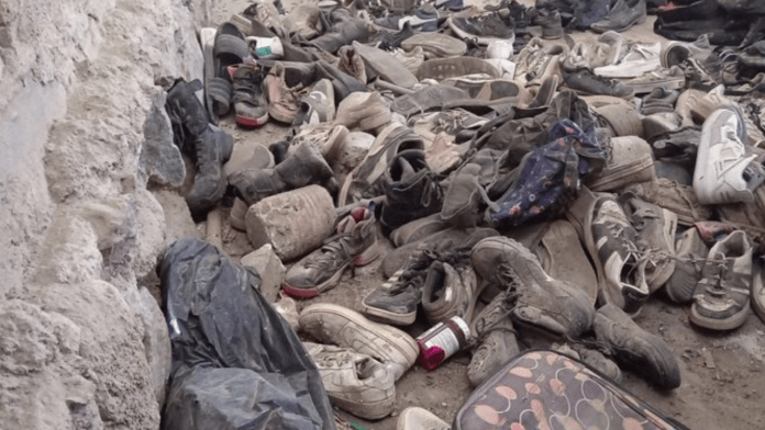 De acuerdo con la información, en el lugar llamado Rancho de Exterminio fueron localizados además cerca de 400 pares de zapatos, ropa y maletas, posibles pertenencias de las víctimas.