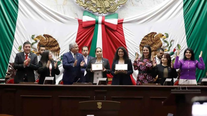 Morelia, Michoacán.- En sesión solemne la 76 Legislatura entregó la Condecoración “La Mujer Michoacana 2025” a las ciudadanas Yareni Karla Pérez Vega y Jannet Adriana Hernández Vega.