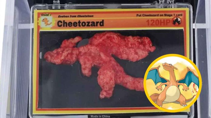 El Cheetozard, como se le apodó, es un Cheeto Flamin’ Hot de aproximadamente 7 cm de largo, y fue preservado en una caja transparente especial para asegurar su conservación. A pesar de su apariencia simple, su valor se disparó gracias a su inusual forma, similar al famoso Pokémon Charizard, uno de los más queridos por los fanáticos de la franquicia.
